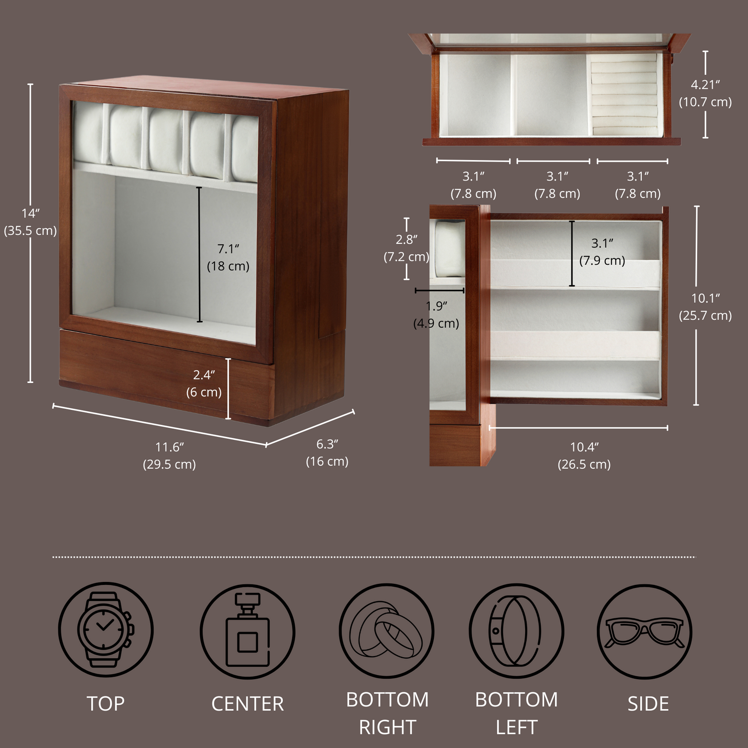 ✅ Watches & Jewelry: Specialized compartments for timepieces.